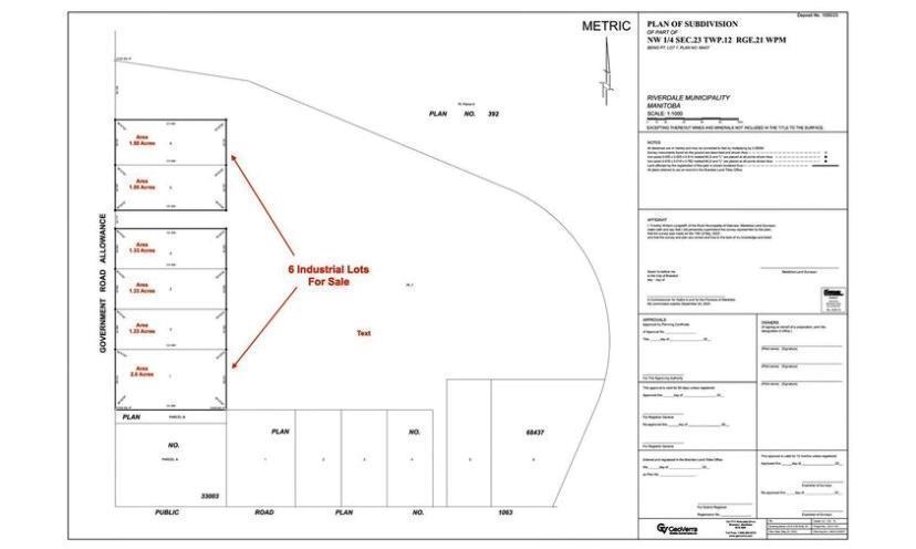 ANW//Rivers/Vacant Lots in an Industrial Park area in Rivers. Located just south of the tracks there are 6 vacant lots available in various sizes. Looking for some commercial space? Call your agent for details! (id:28127)